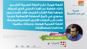 قال الشاعر المصري محمد أبو زيد لـ "العين": اللغة العربية قد قامت بدور محوري في تاريخ الحضارة الإنسانية عندما نقلت إلى اللغات الأخرى العلم والمعرفة".