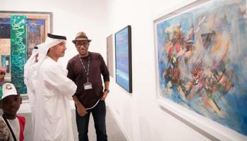 اطلع الشيخ هزاع بن زايد في جولته بمعرض "فن أبوظبي 2016" على مشاركات الجهات والمؤسسات الحكومية والأكاديمية في مجال الفنون والثقافة