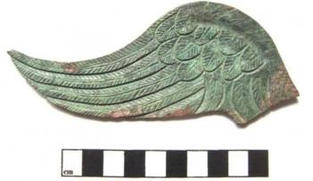 اكتُشف جناح من مادة البرونز، خلال عملية تنقيب أثري في مدينة غلوستر جنوبي غرب إنجلترا.