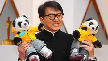 جاكي شان لفت الانتباه في حفل الأوسكار بظهوره وهو يحمل اثنتين من دمى الباندا