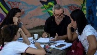 إدنا بينييرو (86 عاما) تتعلم القراءة والكتابة في إطار مبادرة "تبن تلميذا" في 11 حزيران/يونيو 2019 في ريو دي جانيرو.