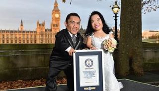 أقصر زوجين بالعالم، باولو دا سيلفا باروس وكاتيوشيا هوشينو، يصلان لندن للاحتفال باليوم العالمي لموسوعة جينيس.