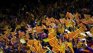 جماهير برشلونة تتأهب لموقعة الكلاسيكو أمام ريال مدريد عن طريق رفع أعلام كتالونيا مع بداية المباراة في إشارة إلى الانتماء إلى الاقليم.