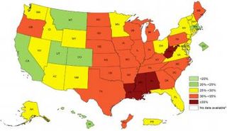 مركز الوقاية ومكافحة الأمراض يضع خريطة تبين توزيع البدانة بين سكان الولايات المتحدة الأمريكية.. ما الولاية الأكثر بدانة؟
