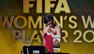 فازت الأمريكية كارلي لويد بجائزة الكرة الذهبية لأفضل لاعبة في 2015 والتي يمنحها الاتحاد الدولي لكرة القدم، خلال الحفل المقام في زيورخ