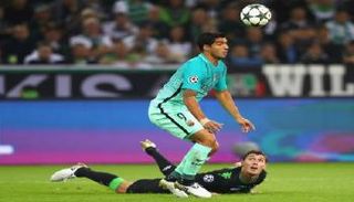 سواريز مهاجم برشلونة، يقوم بحركة غير أخلاقية تجاه جمهور مونشنجلادباخ، ويتخكم على الحكم المساعد، ما هي التفاصيل؟.