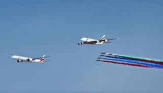 "طيران الإمارات" أبهرت حضور معرض دبي للطيران 2017 وعُشاق الطيران بعرض جوي فريد