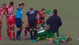 لاعب فريق مولودية وجدة المغربي سقط أرضاً إثر كرة مشتركة، وتم إسعافه على الفور وأنقذته العناية الإلهية من الموت.