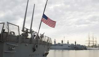 مابوس قال، من على متن المدمرة (يو.إس.إس مايسون) في البحر المتوسط، إن من واجب البحرية الأمريكية ردع العدوان وإبقاء الخطوط البحرية مفتوحة