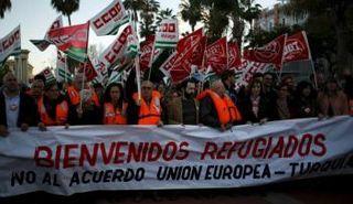 تجمعات لمواطنين في مدن أوروبية لطلب استقبال اللاجئين، وذلك على خلاف الاتفاق الأوروبي التركي الذى تم توقيعه.