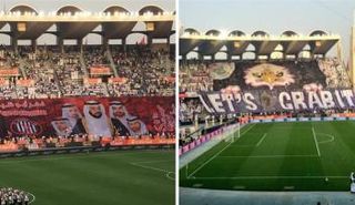 جماهير ناديي الجزيرة والعين تكشف عن التيفو الخاص بكل منها قبل انطلاقة لقاء الفريقين في نهائي كأس رئيس الإمارات.