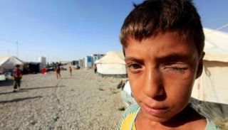 الأسر التي فرت من قريتها مع بداية هجوم القوات العراقية لاستعادة مدينة الموصل من الإرهابيين، تفترش الأرض بالقرب من تينة شمالا، وسط عبوات المياه الفارغة ونفايات أخرى