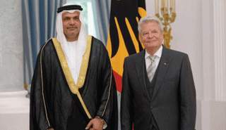 يوأخيم جاوك، رئيس جمهورية ألمانيا الاتحادية، يتسلم أوراق اعتماد علي عبدالله الأحمد، كسفير لدولة الإمارات لدى برلين.