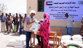 مؤسسة خليفة بن زايد آل نهيان للأعمال الإنسانية توزع 350 سلة غذائية على طلاب وطالبات مدرسة الشيخ زايد بن سلطان آل نهيان للأيتام بالصومال