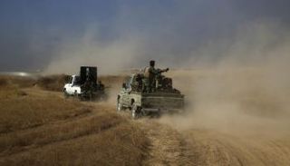 انسحاب جزئي لداعش أمام تقدم كردي كبير شرق الموصل وتأهب الحشد الشعبي لهجوم جنوبي، بعد ساعات من بدء معركة الموصل.