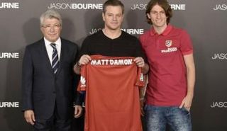 رئيس أتلتيكو مدريد إنريكي سيريزو، يلتقي مع الممثل الأمريكي مات ديمون ويهديه قميص النادي الإسباني معلنه أنه صفقة الصيف للأتليتي