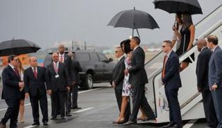 موجة من الطقس السيء والأمطار الغزيرة كانت في استقبال الرئيس الأمريكي باراك أوباما وأسرته لدى وصولهم إلى كوبا في زيارة تاريخية