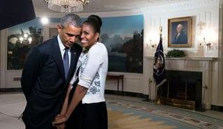 نشر الرئيس الأمريكي باراك أوباما على صفحته بالفيس بوك صورة غرامية جمعته بزوجته في قاعة استقبال الدبلوماسيين بالبيت الأبيض