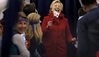 مجموعة من الصور التي نشرت في العديد من مواقع الإنترنت والأخبار العالمية منها الصحف والمجلات لأقنعة ترامب وهيلاري المرشحين الرئاسيين لأمريكا.