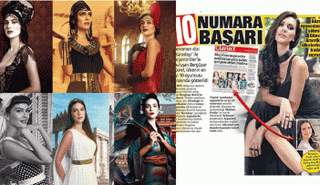 إطلالات مختلفة تنقلت فيها الممثلة بيرجوزار كوريل بين 4 حقب التاريخية، خلال جلسة تصوير مع مجلة تركية