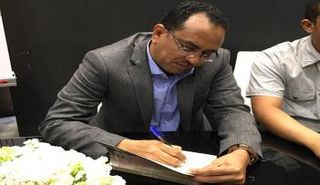 شخصية العام الثقافية بالبحرين تذهب للروائي الكويتي سعود السنعوسي على هامش مشاركته في معرض البحرين للكتاب