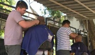 فيديو لسكان أحد الأحياء الفقيرة في ريو دي جانيرو يتابعون مباريات الملاكمة في صالون حلاقة نقال في أحد شوارع ريو