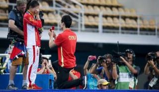الصينية هي زي تحصل فضية الغطس في أولمبياد ريو دي جانيرو لتفاجأ بطلب زواج من رفيقها على منصة التتويج