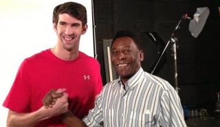 البرازيلي بيليه أسطورة كرة القدم في بلاده يهنئ عملاق السباحة الأمريكي مايكل فيلبس على مواصلة تألقه في أوليمبياد ريو 2016.