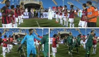 ممر شرفي للاعبي أهلي جدة قبل مباراتهم أمام الرائد في الجولة 25 من دوري عبد اللطيف جميل السعودي للمحترفين.