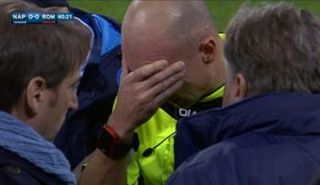 تعرض الحكم المساعد بمباراة نابولي وروما ضمن الجولة الـ 16 للدوري الإيطالي، لإصابة حرمته من استكمال المباراة ليخرج رفقة الطاقم الطبي.