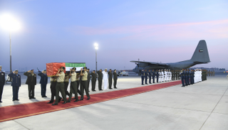 جثمان الشهيد الإماراتي حسن عبدالله محمد البشر يصل أبوظبي على متن طائرة عسكرية تابعة للقوات الجوية والدفاع الجوي
