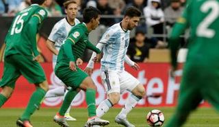 ليونيل ميسي قائد المنتخب الأرجنتيني يتجاهل صافرة حكم مباراة منتخب بلاده مع نظيره البوليفي لرغبته في تسجيل هدف، ويتلاعب بحارس المنافس.