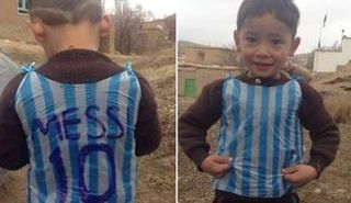 ليونيل ميسي نجم برشلونة أبدى تعاطفًا كبيرًا مع لقطة أظهرت طفل أفغاني يرتدي كيس بلاستيك يحمل اسم ميسي في شكل قميص الأرجنتين