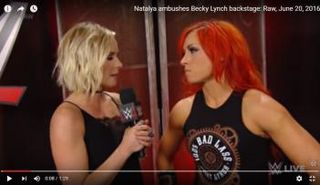 أثناء حوار لها في عرض "رو" فوجئت بيكي لينش بزميلتها نتاليا تعتدي عليها مجددا بينما كانت تتحدث عن اندهاشها من اعتداءها في اليوم السابق.