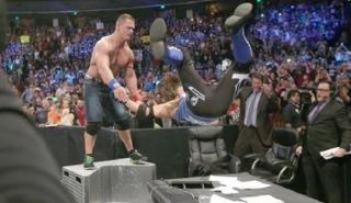جون سينا ينتصر على ألبرتو ديل ريو في نزال بعرض "سماكدون" الماضي، وإيه جيه ستايلز يدخل ويحاول الاعتداء عليه لكن حظه كان سيئا.