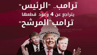 4 وعود قطعها ترامب للأمريكيين، ولكن يبدو أن ترامب "الرئيس" لا يشبه ترامب "الرئيس".. اعرف أكثر في الإنفوجراف التالي.