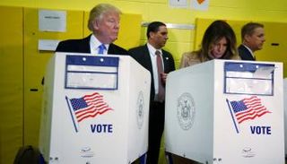 ترامب ينظر إلى ورقة اقتراع زوجته ليتأكد من أنها تصوت له