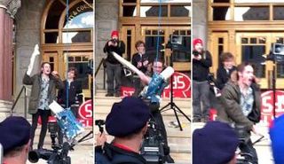 على طريقة إعدامات تنظيم "داعش"، أقدم معارضون لدونالد ترامب على قطع رأس دمية، للمرشح الجمهوري المحتمل لانتخابات الرئاسة الأمريكية