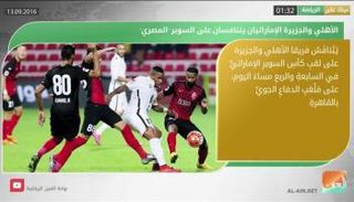 قناة أبوظبي الرياضية الأولى تبث مباراة السوبر الإماراتي بين الأهلي والجزيرة باللغة الإنجليزية خلافا لما أعلنت.. تعرف على التفاصيل