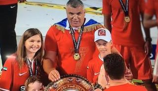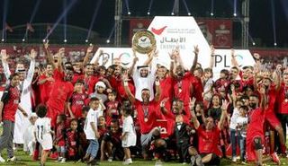 لاعبو النادي الأهلي الإماراتي يحتلفون بلقب الدوري على الطريقة العالمية بإحضار أبنائهم معهم من أجل التتويج باللقب السابع في تاريخهم.