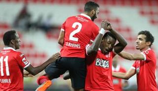 أحمد خليل قائد الأهلي الإماراتي يسجل هدفا لفريقه ويقوده لتصدر الدوري المحلي مؤقتا.