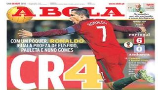 الصحف الرياضية البرتغالية تغدق الثناء على نجم منتخبها كريستيانو رونالدو، بعد تسجيله سوبر هاتريك في شباك أندورا.. فماذا قالت؟