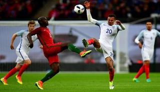 سمولينج يسجل الهدف الوحيد لإنجلترا من ضربة رأس قبل 5 دقائق على النهاية ليقود بلاده للفوز 1-صفر على 10 لاعبين من البرتغال.