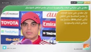 مدرب الإمارات يقول إن فرص التأهل لكأس العالم 2018 ستتضح بعد مباراتي تايلاند والسعودية.