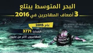 منظمات دولية ترصد 3 أمثال الضحايا من المهاجرين بالبحر المتوسط خلال 2016 عن الأعداد التي تم رصدها في 2015.