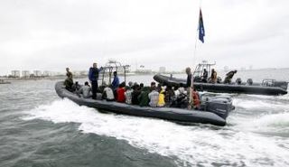 خفر السواحل الليبيون يعترضون 7 زوارق تقل نحو 850 مهاجرا كانوا يحاولون عبور البحر المتوسط للهجرة إلى أوروبا.