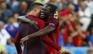 البرتغالي إيدر لوبيز يوجه الشكر لزميله كريستيانو رونالدو قائد الفريق بعد الفوز الثمين 1 / صفر على المنتخب الفرنسي في نهائي اليورو.