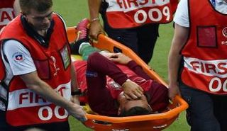 البرتغالي كريستيانو رونالدو لإصابة في القدم بعد دقائق من انطلاق المباراة النهائية ليورو 2016 ليغادر الملعب في موقف مؤثر.