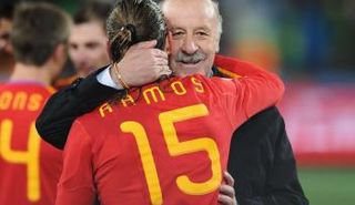 سرخيو راموس مدافع ريال مدريد ومنتخب إسبانيا يودع مدربه السابق فيسنتي ديل بوسكي الذي رحل عن قيادة المنتخب الإسباني مؤخراً.