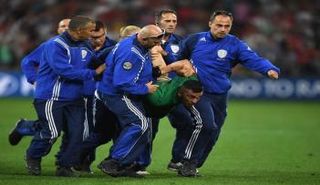 مشجع يقتحم مباراة بولندا والبرتغال والتي أقيمت مساء الخميس في إطار افتتاح مباريات دور الثمانية ببطولة أمم أوروبا 2016.